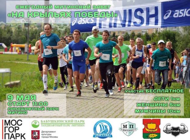 9 мая 2016 года в 11:00 в Ландшафтном парке «Митино» Москвы состоится ежегодный Митинский забег ‘На крыльях Победы‘. Принять участие может любой желающий абсолютно бесплатно.